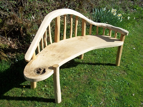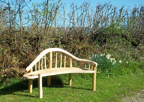 The rustic organic oak seat was chose to curve to give a quirky look to the comfortable oak wooden garden bench.