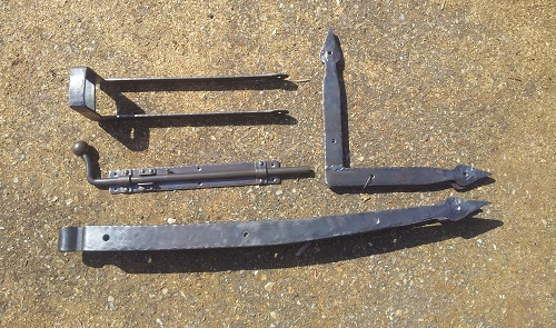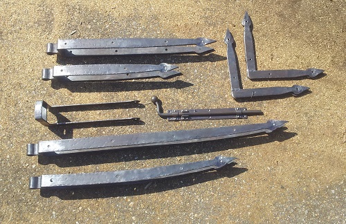 Most of our gates require hand forged hinges and latches which follow the curved of the gates. We are very lucky to have a very talented blacksmith local to us. We take the gates to him and he hand forges them to the gates using mild steel.